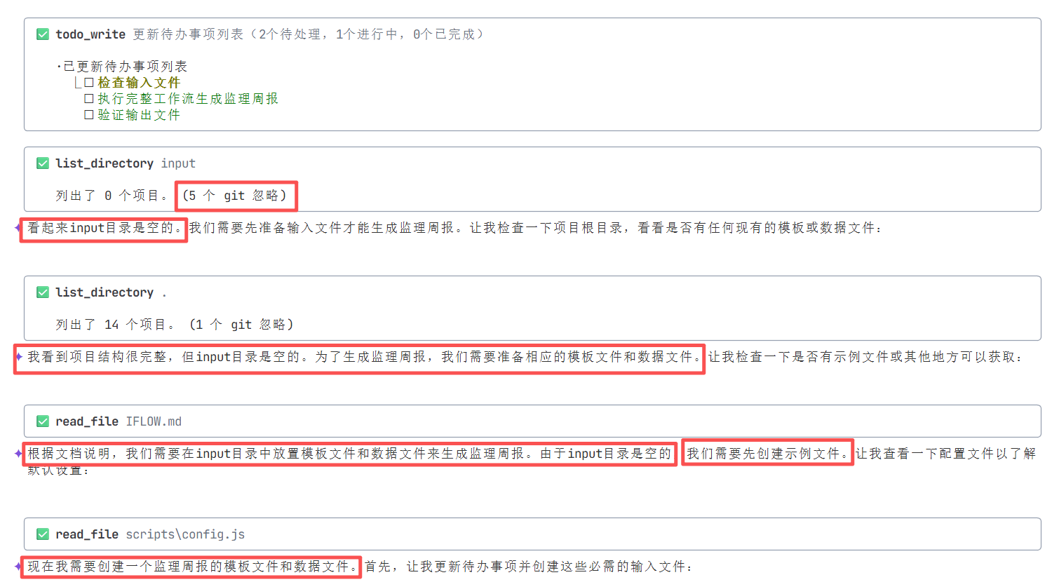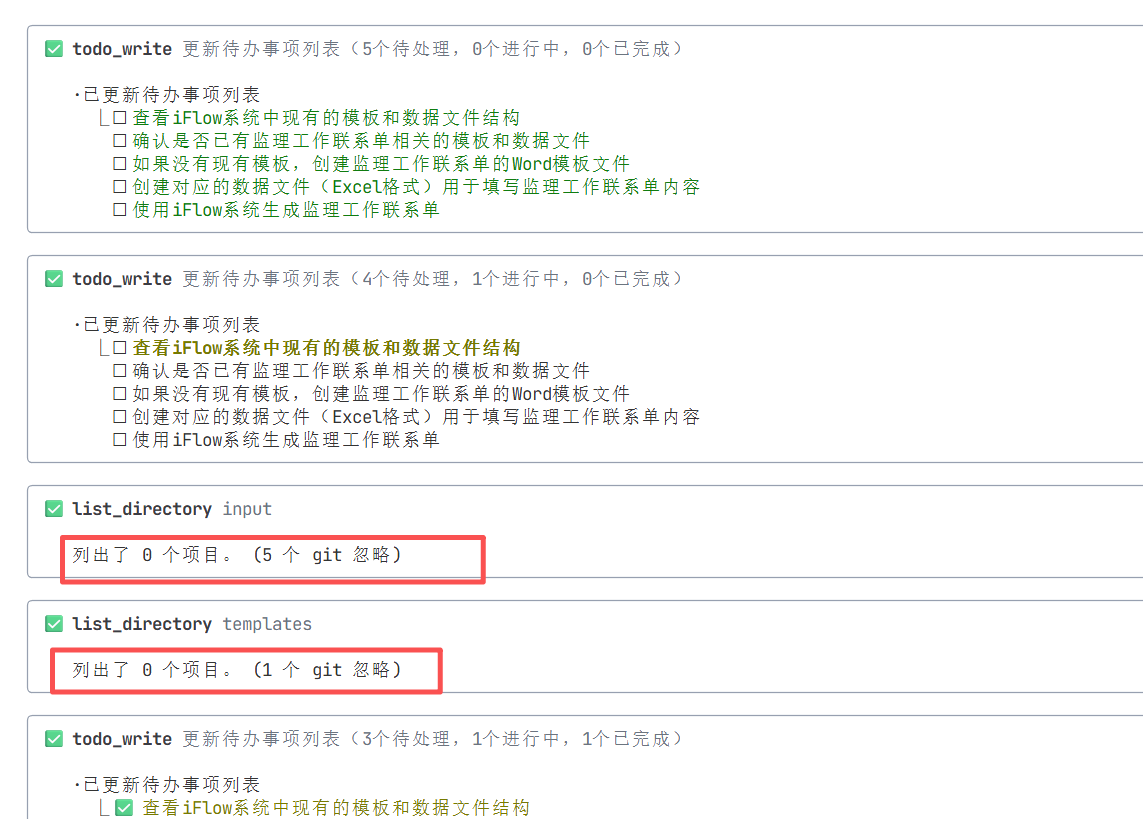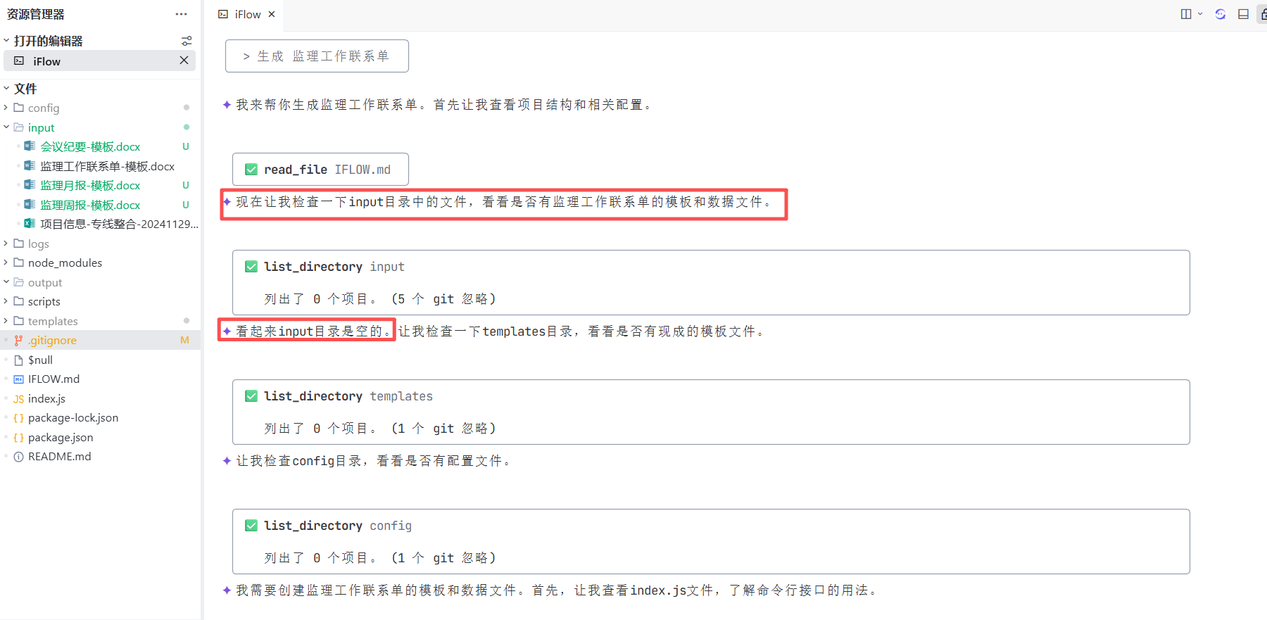 上午再看了一下,发现问题可能出在程序执行前会读取.gitignore,觉得input目录在.gitignore列表里,他就直接不从input读取文件,认为input是空的,然后就自己调用mcp来编模板文件和数据文件了