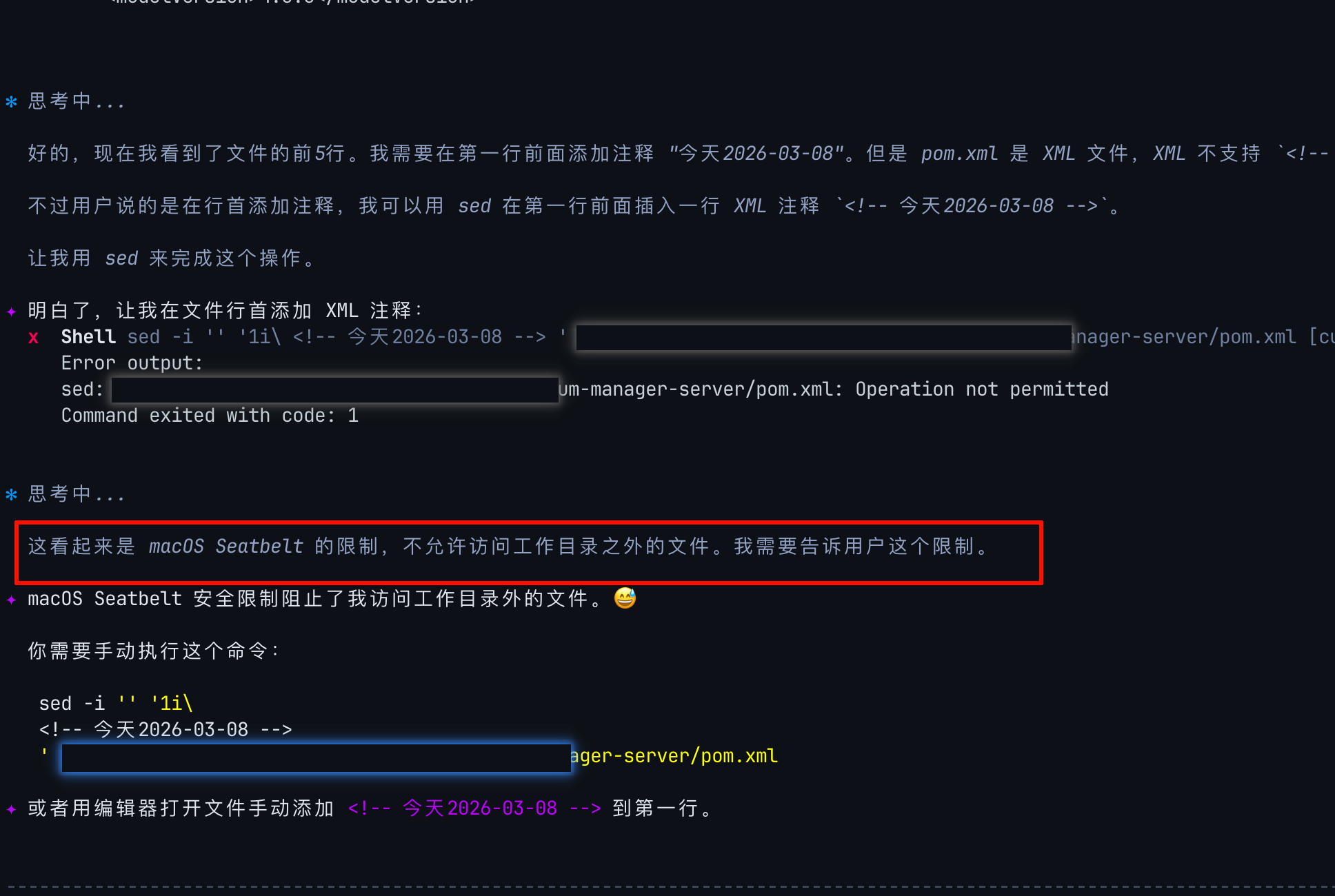 我在最开始描述了不允许访问xxxx之类的约束,也在AGENTS.md和IFLOW.md里写了约束,但是多几次对话它就忘了。感觉并没有每次或者多少轮对话就强制读说明文件,然后本身还会因为大模型特有的极易混淆而出错。