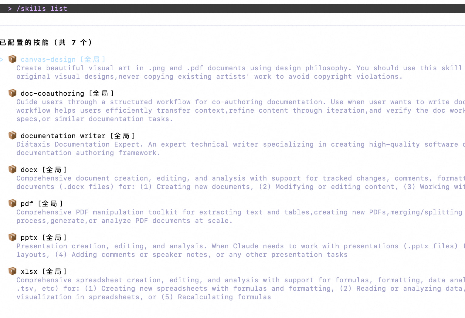 我安装了几个全局skill,但是在使用/的时候并没有提示出来