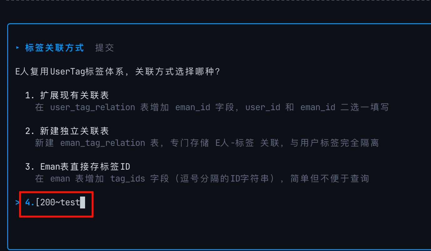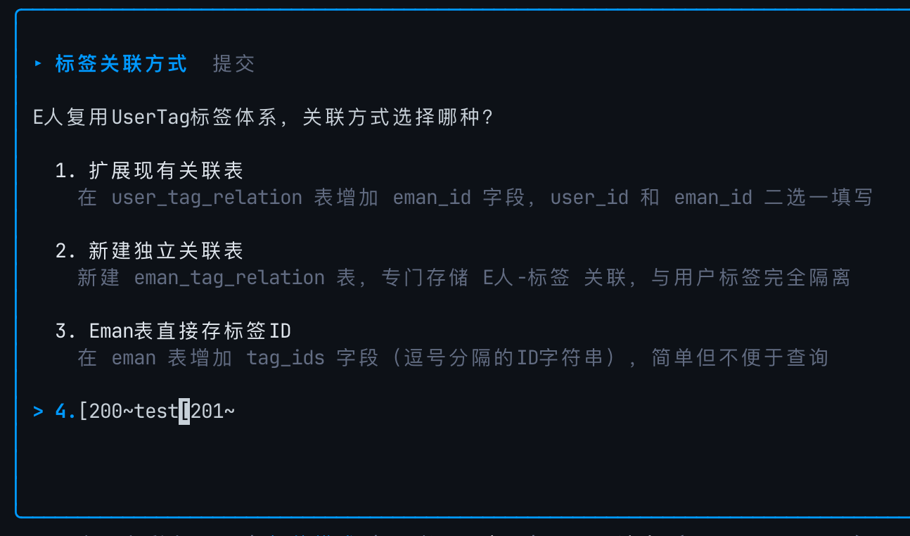 计划模式的自定义回答一直有点问题,包括但不限于,撑破右侧边框,内容多了以后会多出奇怪字符,且一直在光标的后边,控制按键、制表符、箭头、鼠标都会识别为一些奇怪的字符等等,这些问题其实是已知问题,看官方排期吧,其实这块如果也能像常规的输入框一样支持ctrl+x调用外部编辑器就能好非常非常多了
