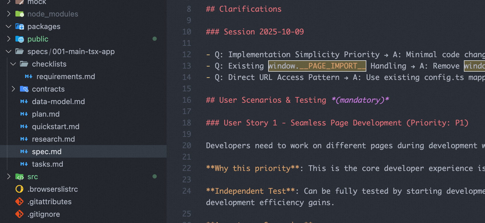# 上一步完成,会在当前目录生成 specs 目录。仔细阅读 spec.md 如果有什么不清楚的