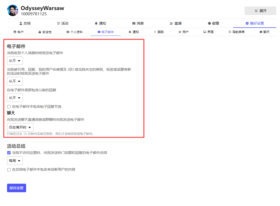 默认设置是看过的帖子自动关注,然后关注的帖子有新评论会进行邮件通知,还默认关注了所有板块,板块有新帖子也会通知,当时注册了半个小时收了一百多条邮件