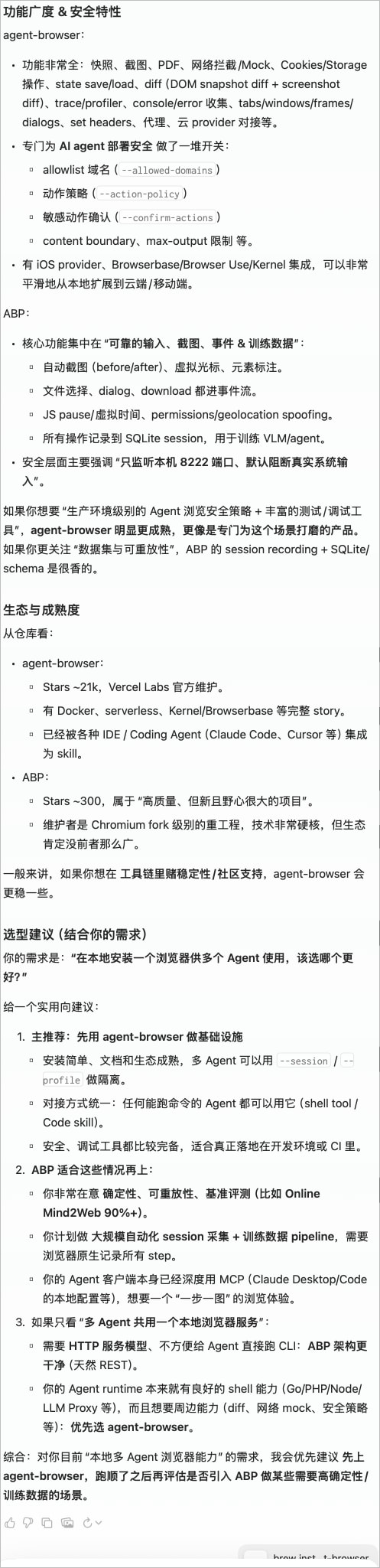 相比较,我感觉会比web_fetch好,还能交互, 这些浏览器也支持导入 自己使用浏览器的auth信息,我觉得这风险太大,没测试