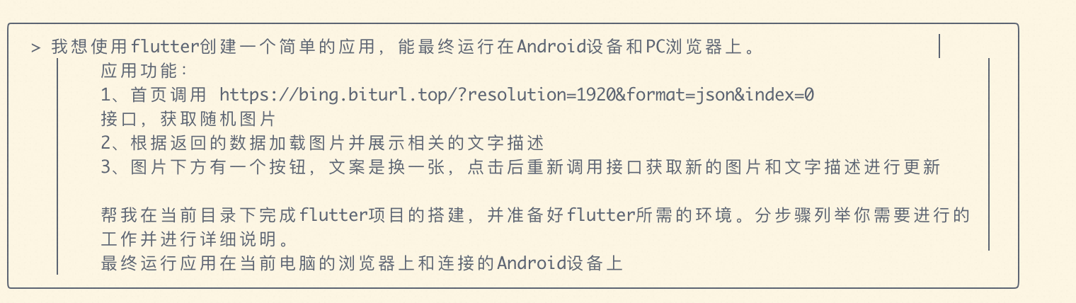 由于Flutter是可以跨端运行在Android IOS Web上的技术,基于已有的设备,让CLI整一个可以在电脑浏览器和Android手机上跑起来的应用。