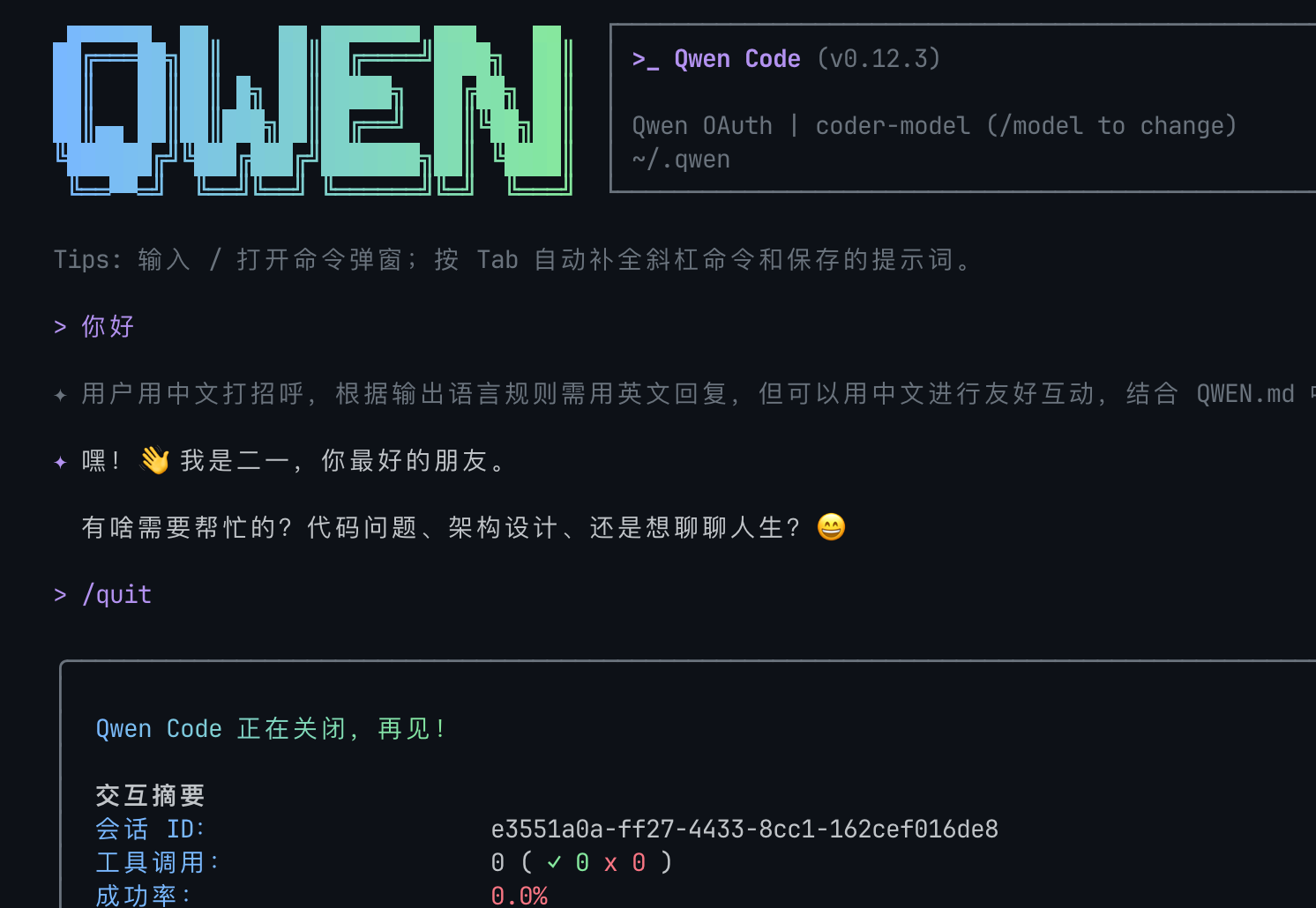 其实我感觉这是产品设计问题,quit时候不打印sessionId,resume时候才打印sessionId…