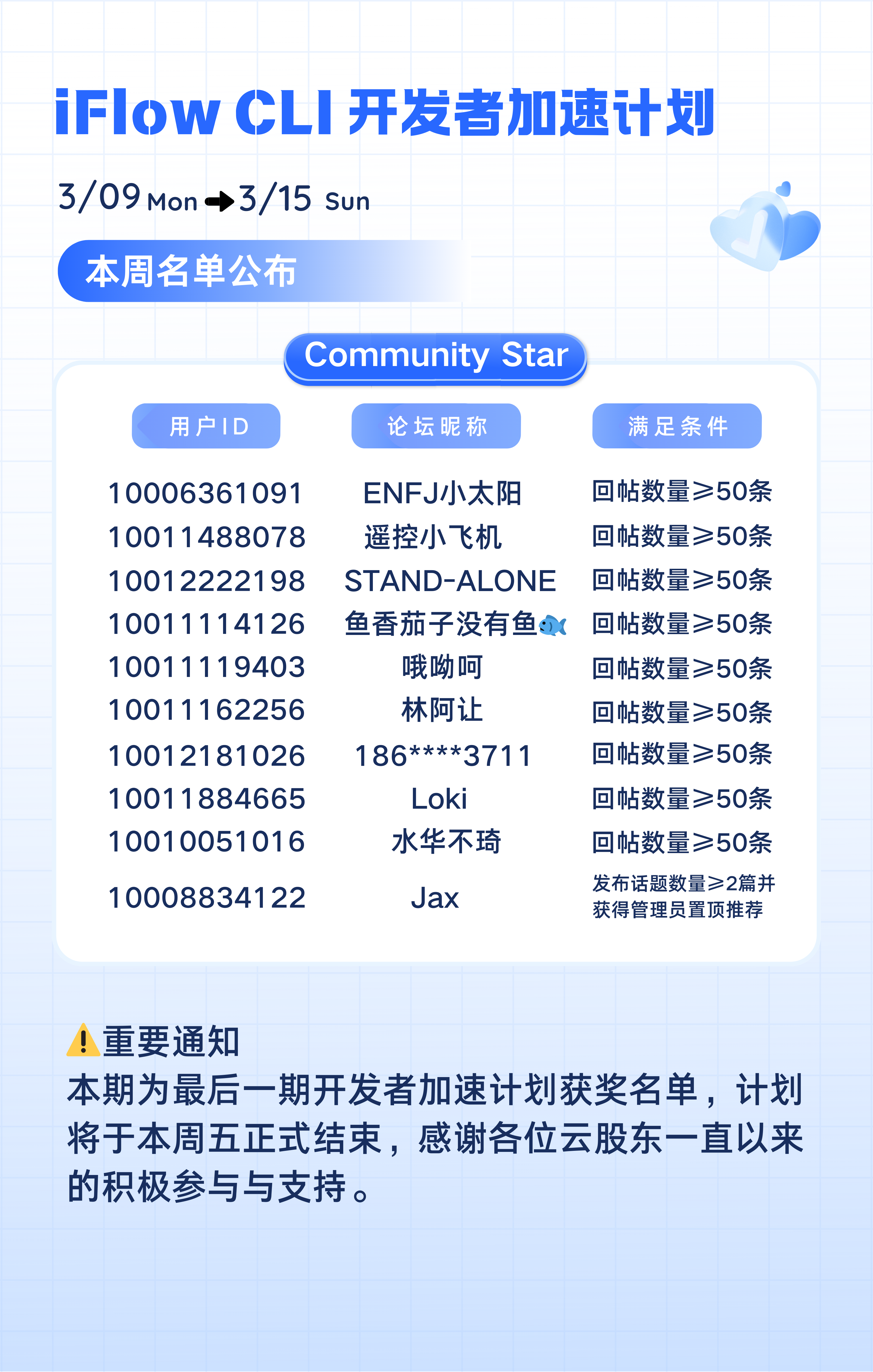 小 Tips:用户 ID 与社区 ID 一致,可以快速检查自己是否上榜哦~