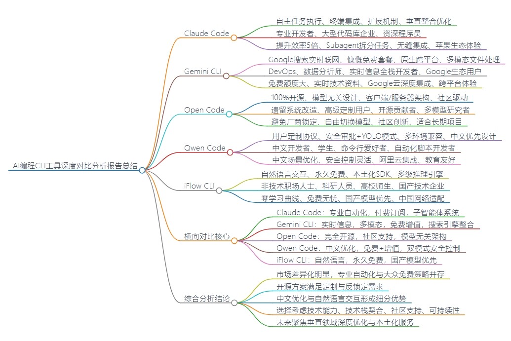 所以核心任务是:**对多个 AI 编程 CLI 工具进行深度对比分析,找出每个工具独有的特点,并分析各自的用户群体和开发者钟爱的原因。**