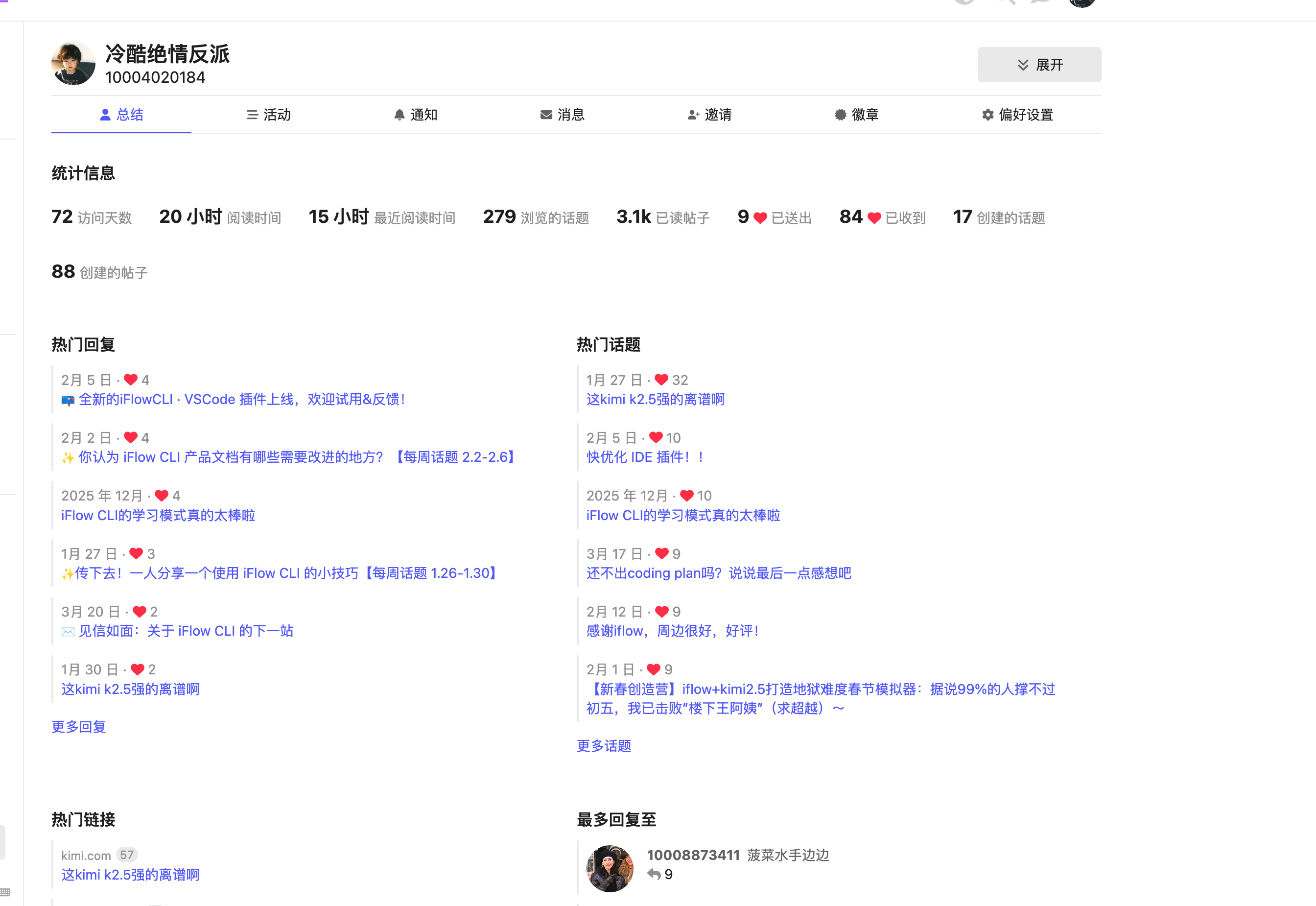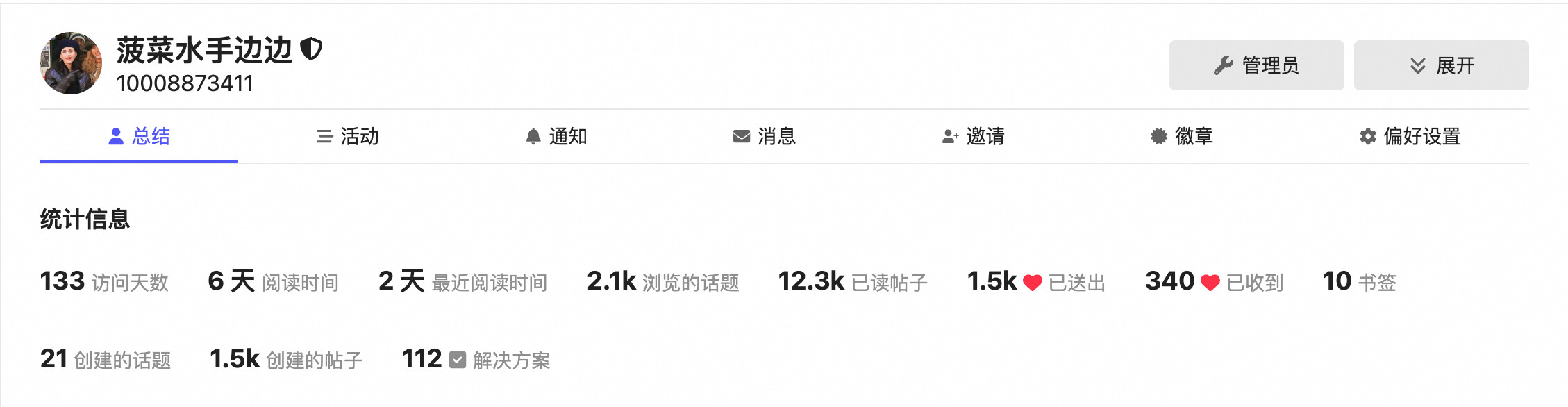 社区活跃信息:点击头像 - 总结,截取首页 头像+“统计信息”即可