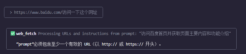 使用iflow访问url会报上述错误, 无论url单独一行还是前后加空格都报错:“prompt”必须包含至少一个有效的 URL(以 http:// 或 https:// 开头)。version: 0.3.15