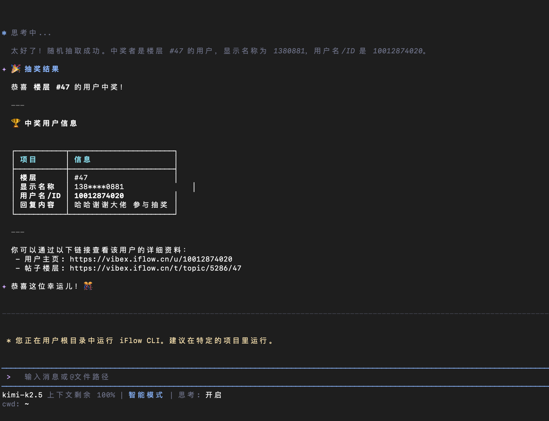 使用iflow cli抽奖,恭喜老铁~!【已发放】