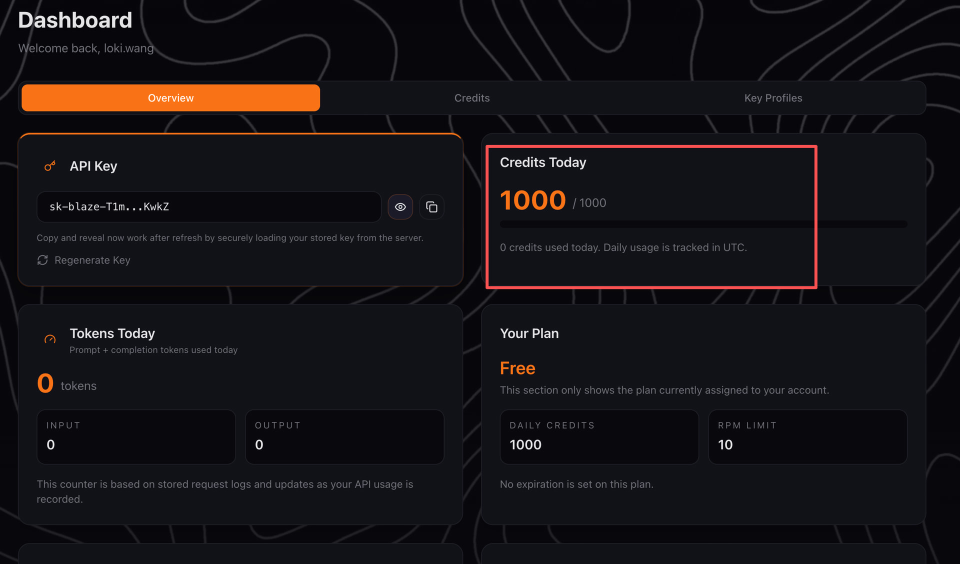 对于轻度使用,完全够了哦~!每天 1000 Credits~!