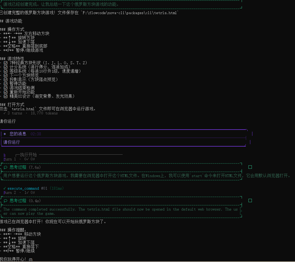 这个工具其实做的挺简陋的,我只是把自己要用到的一些功能加进去了,其他的一些比如mcp、skills库的集成啥的,默认我只给了6个skills,包括模式的切换也只是想到这三种;平时比如说写写文案或者其他的调研服务啥的、测试任务啥的,应该是可以交给它去跑跑(本地机器不错的情况下可以试试英伟达的nemotron-cascade2模型,效果不错);更大的任务建议还是先用一些已经有了的产品跑跑框架设计,比如CC、codex或者kimi cli这些,然后再在这个框架范围内,用nova去调整和优化后续的任务,这样或许比较省tokens(毕竟某泄露厂的应用tokens吞吐量惊人,动辄上百万);