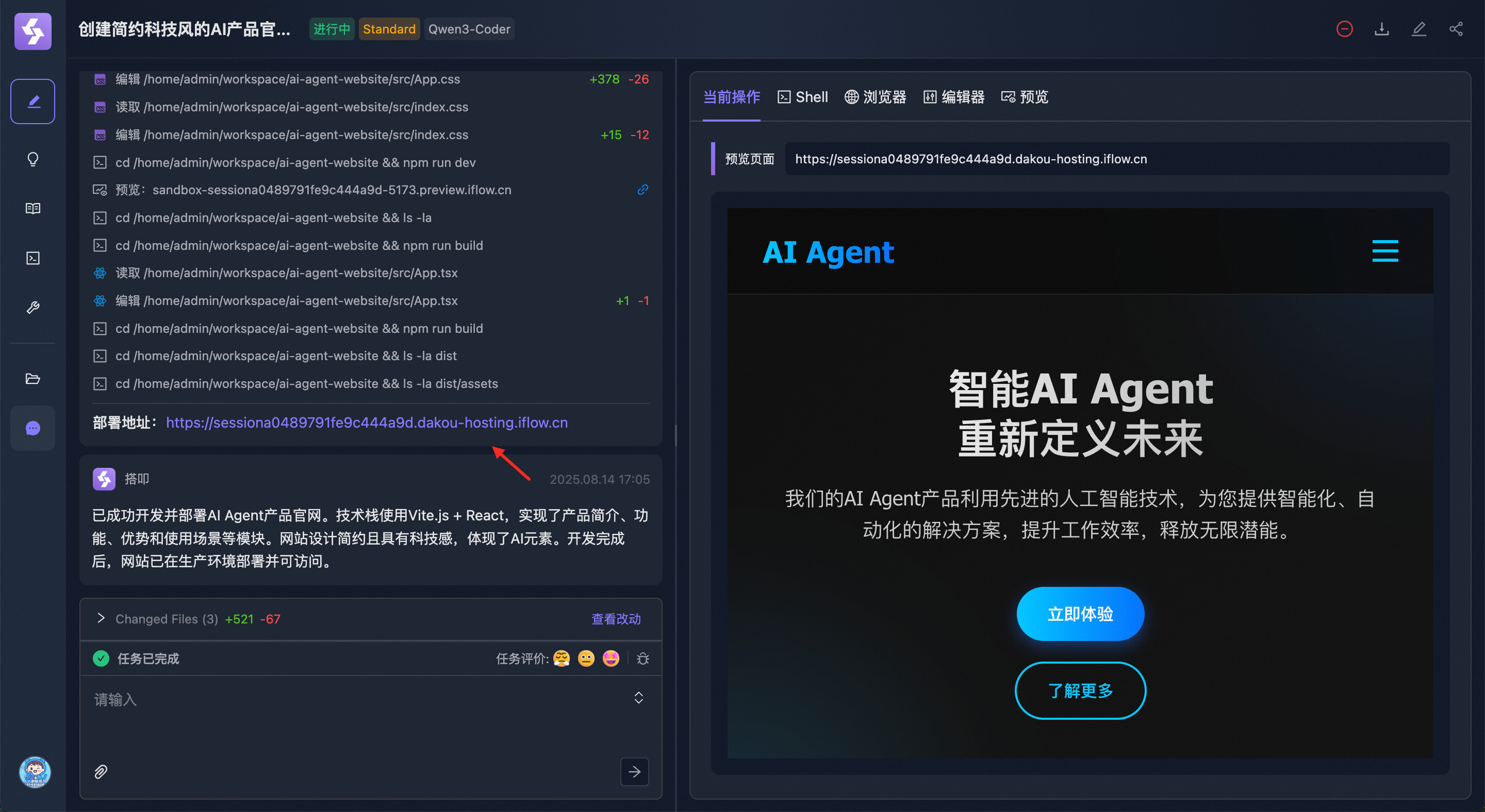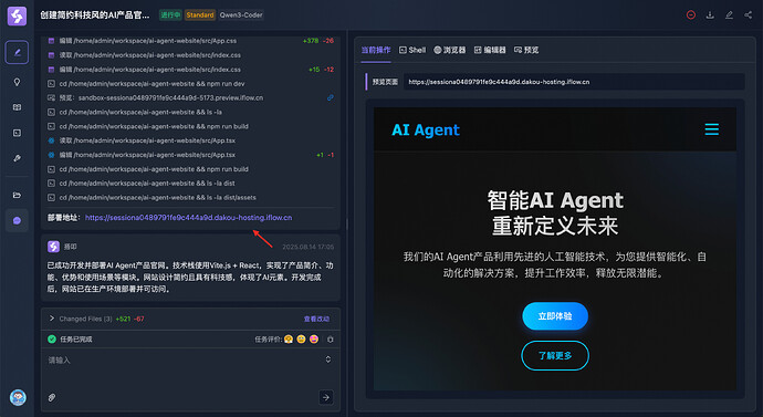 第六步:生成官网地址:https://sessiona0489791fe9c444a9d.dakou-hosting.iflow.cn/