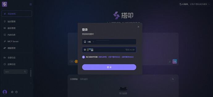 第二步:输入手机号码和获取的验证码,阅读并同意页面展示的协议列表,然后单击登录。
