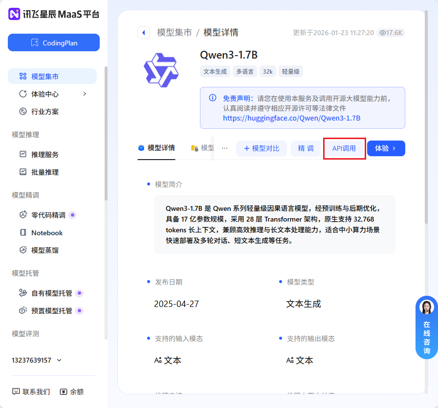 baseUrl:https://maas-api.cn-huabei-1.xf-yun.com/v2