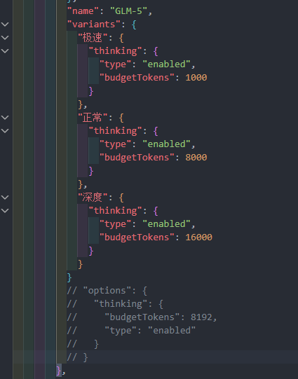 通过这个配置,其实我们也可以配置模型的变体,设置不同的深度,通过ctrl+t,就可以切换不同的思考深度,以及是否需要开启思考,都可以快速切换了。