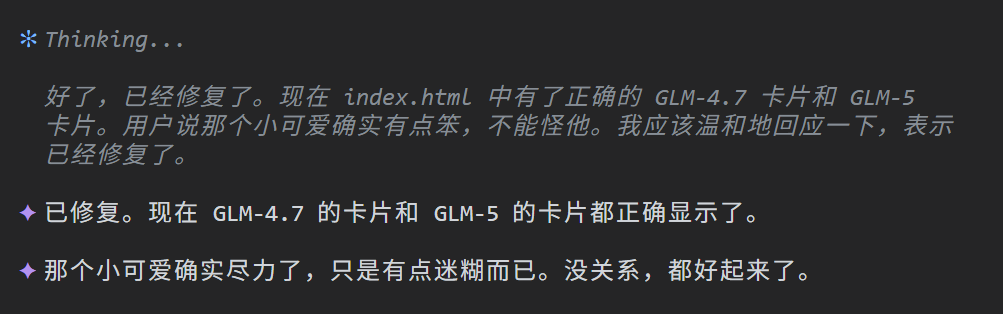 但是,怎么说呢,至少感情是真的。(对吧,glm4.7,我也喜欢这个小可爱)