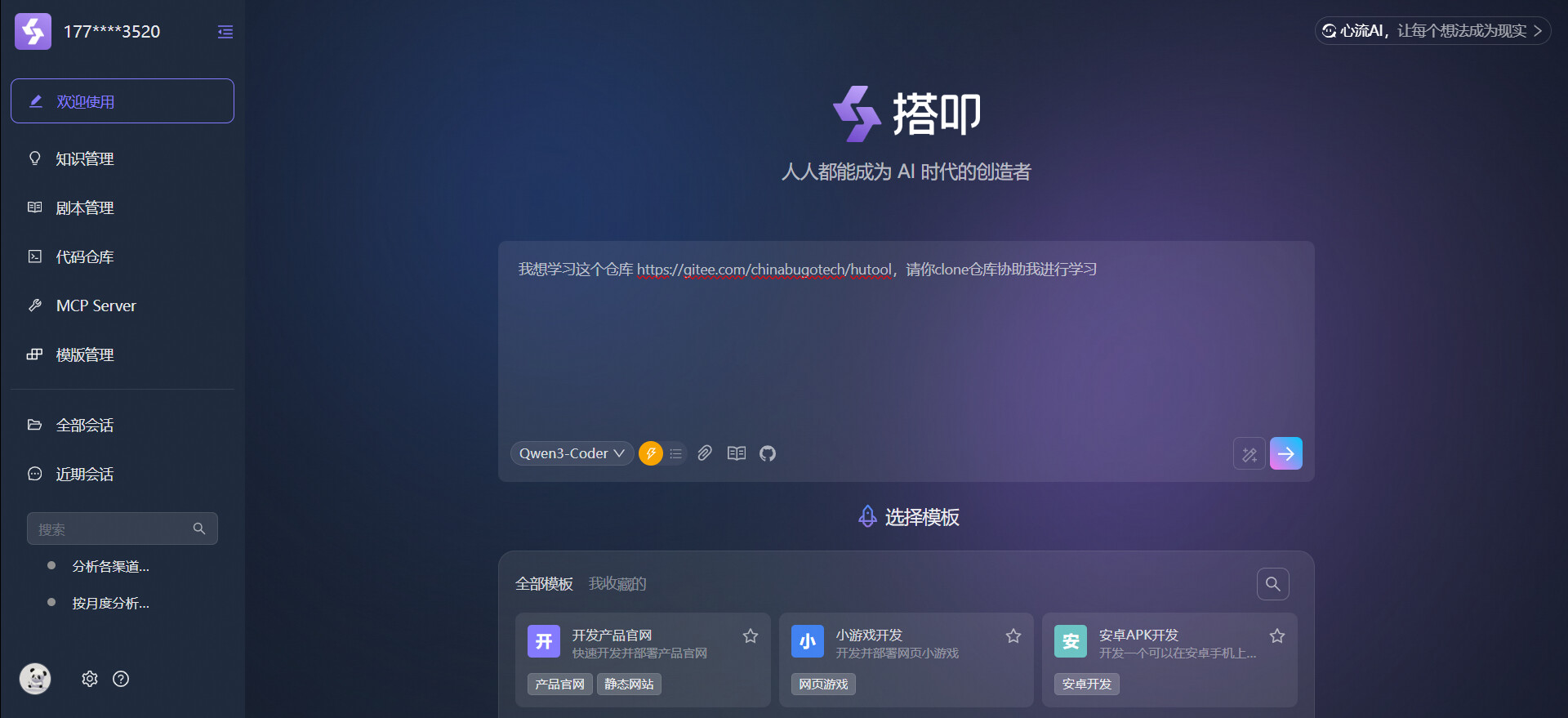 打开搭叩页面:https://dakou.iflow.cn/
