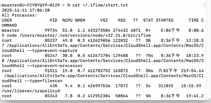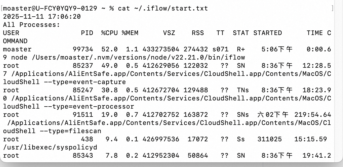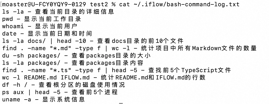 如想查看具体的log信息,可通过命令 cat ~/.iflow/bash-command-log.txt 示例如下:
