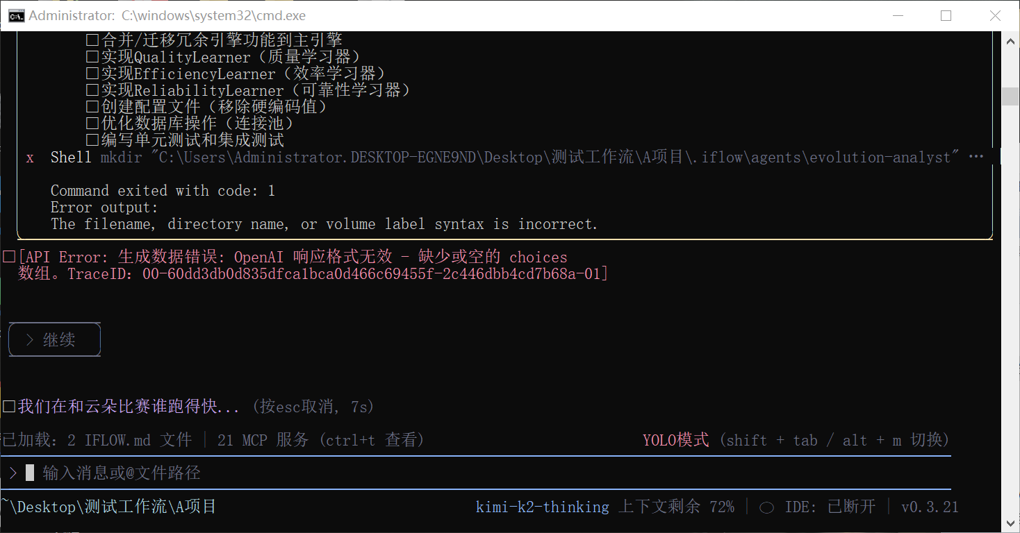 我之前minimax m2 报同样的错 别的贴子 说是 desktop-command 的mcp 命名 不支持导致。你先不用mcp 试试