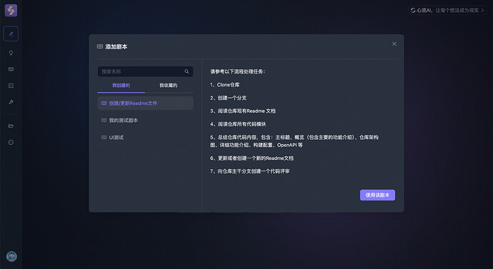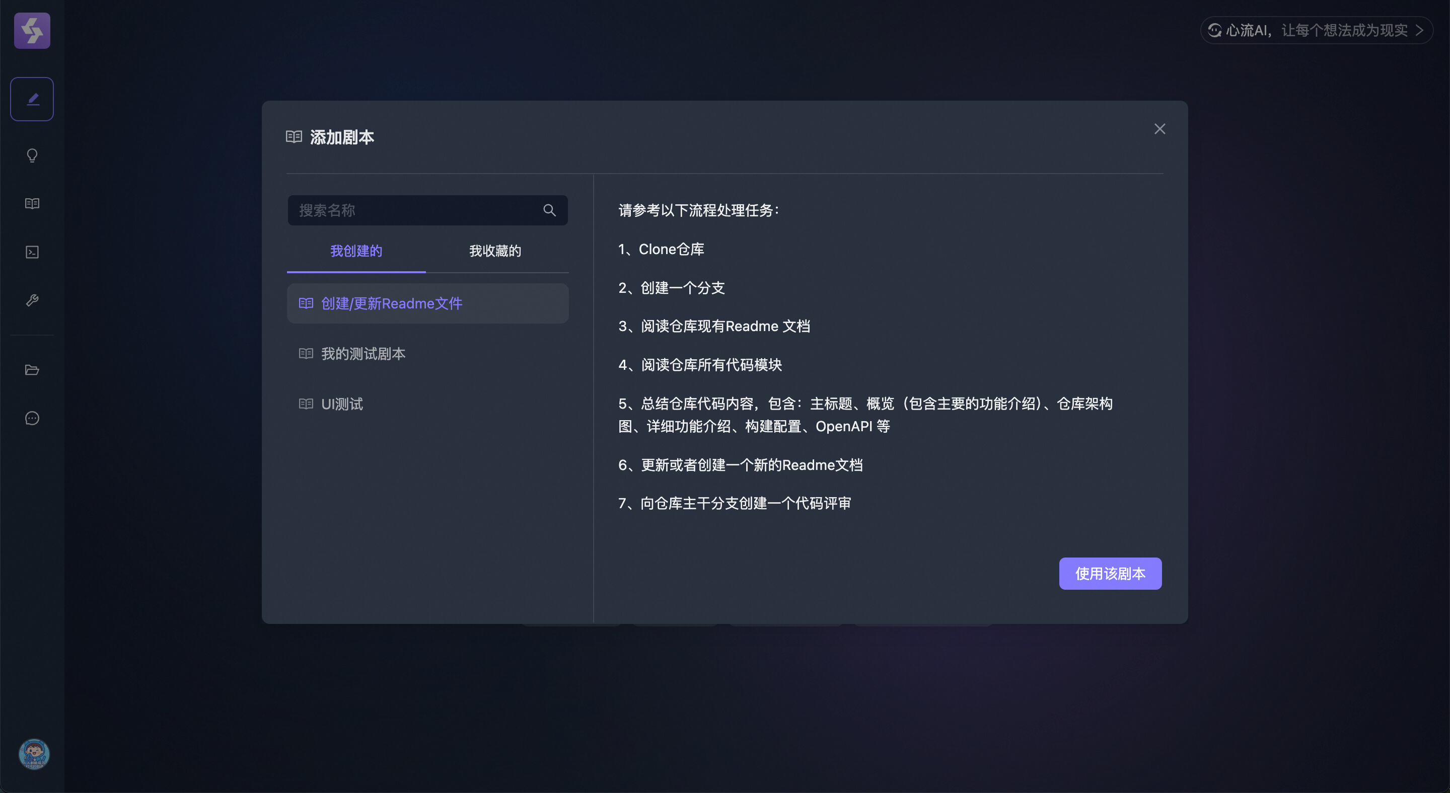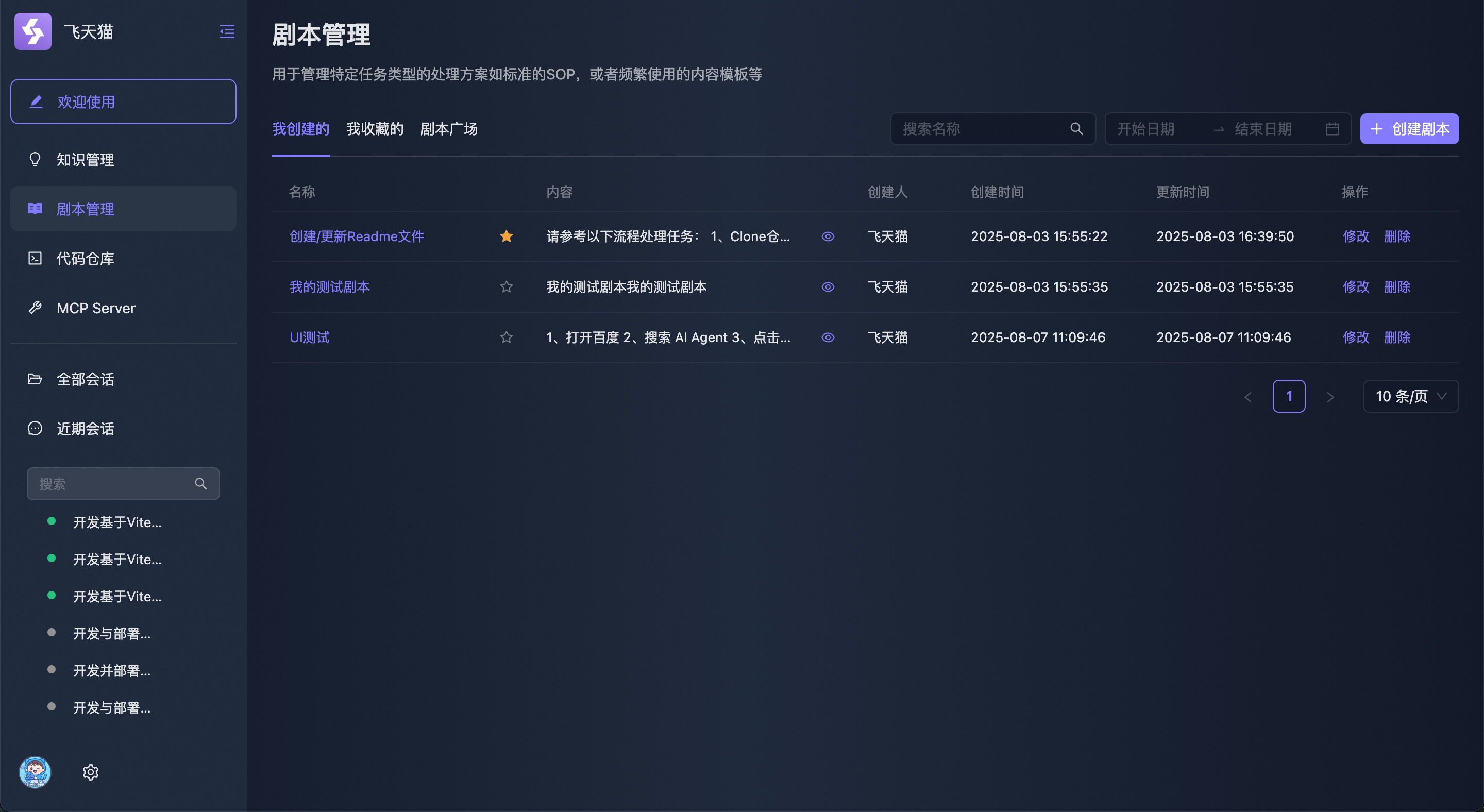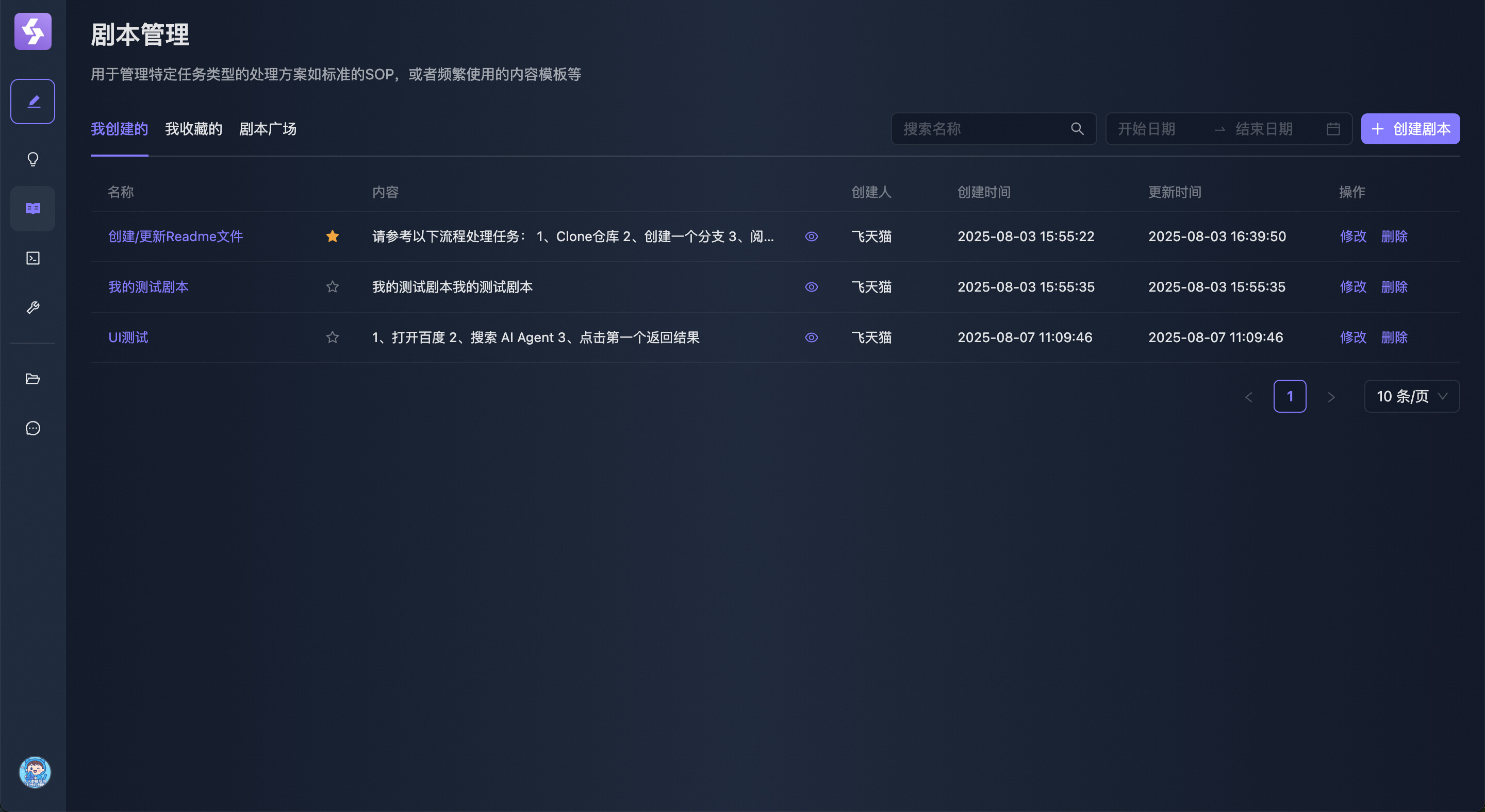- 剧本内容:如处理某类任务的标准 SOP 流程,支持 Markdown 格式。