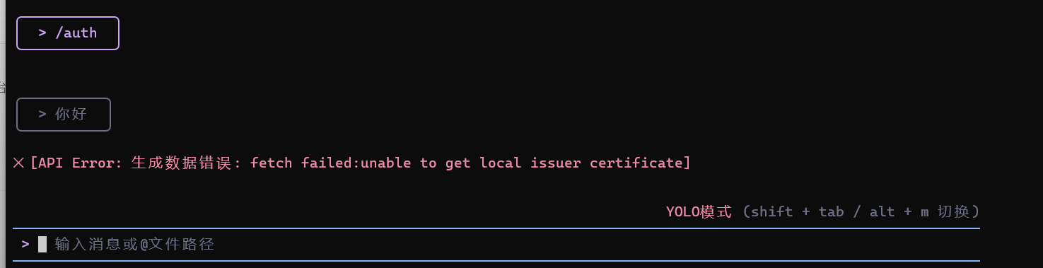 [API Error: 生成数据错误: fetch failed:unable to get local issuer certificate]