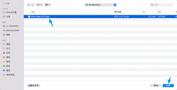 选择 iflow-idea-最新版本号.zip 安装包,安装包在文档上方有对应的下载链接