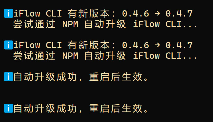 是的,而且更新完成的提示显示了2遍,当时没有截图,过了一会(可能30秒?)才打出/exit